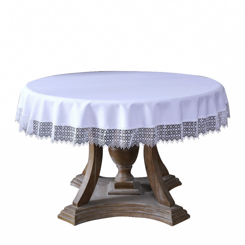 Dizainas: Apvali forma su žavingais plačiais nėriniais kraštuose, pridurianti staltiesei elegancijos.