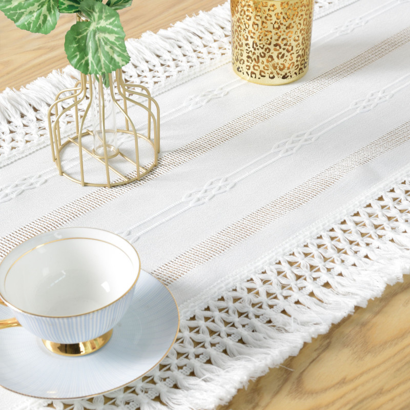 Balta Scandi stiliaus Boho staltiesė su gražiais nėriniais